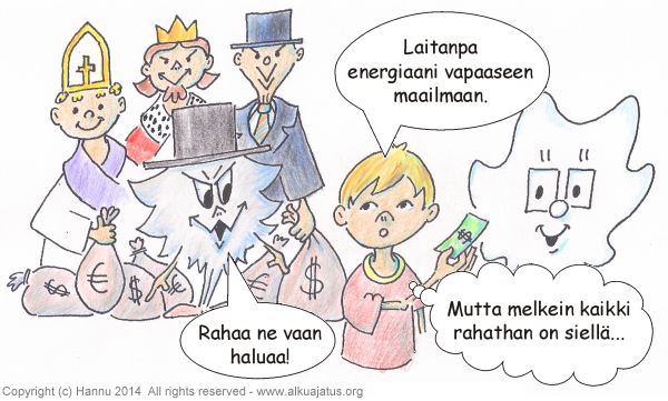 Rahoitamme suurilla summilla joka kuukausi pakolla tai vapaaehtoisesti maailman ajatuksen valtapelin maailmaa. Työmme pitää yllä valtioita, armeijoita, virkakoneistoja, koulutusta, aseteollisuutta, yrityksiä, kirkkoja jne. Työmme siirtyy rahana valtapelin käyttöön välillisesti tai välittömästi. Ilman ihmisten työtä, ei pysy pystyssä valtapeli, eikä mikään sen instituutio. Meidän työmme antaa sille sen energian, millä se on kukoistanut jo tuhansia vuosia.